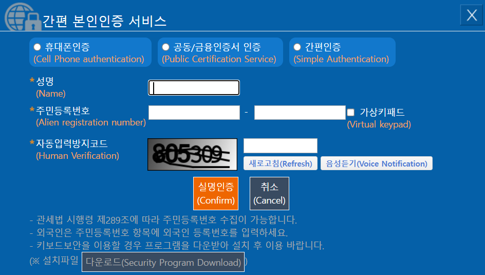 ③ 개인정보입력 후 간단하게 본인 인증을 한다.