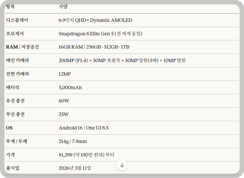 갤럭시 S26 울트라 핵심스팩.