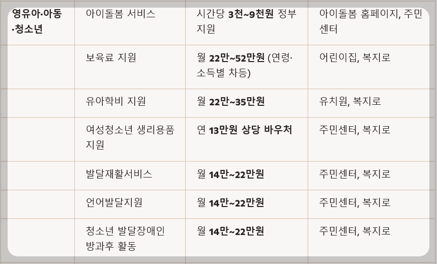 ● 임신·출산, 양육, 돌봄, 복지, 에너지 지원까지 생활 전반을 지원하는 제도이기에 꼭 알아두면 좋습니다.