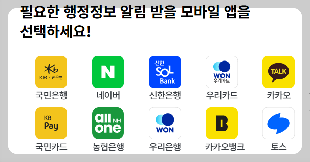 ㅡ 국민비서 알림 서비스를 수신받을 앱을 선택합니다.(알림 채널 2개까지 선택 가능)