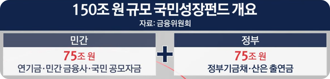 ⯄ 국민성장펀드 150조 규모는 정부지원 75조와 민간지원 75조로 조성됩니다.
