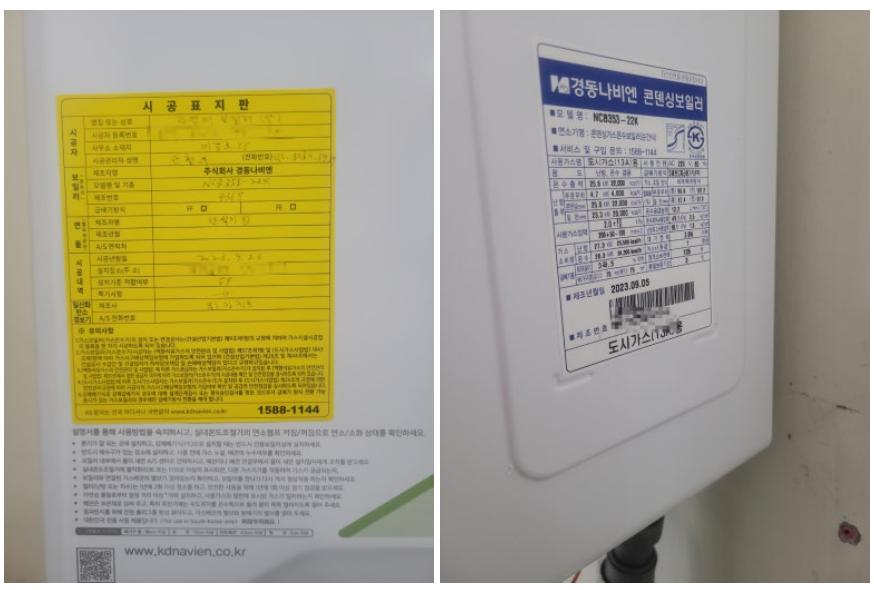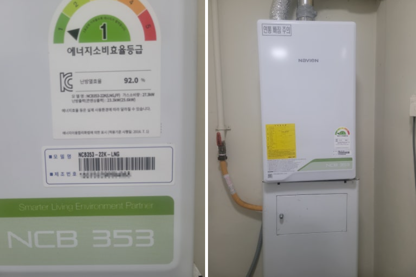 ⯄ 친환경 보일러(환경표지 인증 친환겨)를 받은 콘덴싱 가스보일러.