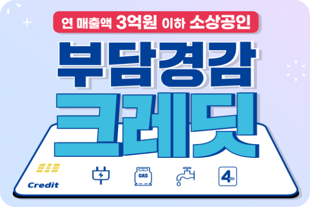 부담경감크레디트는 소상공인이 기업운영에 고정비용으로 지출되는 부담을 경감하기 위해 50만 원을 지원