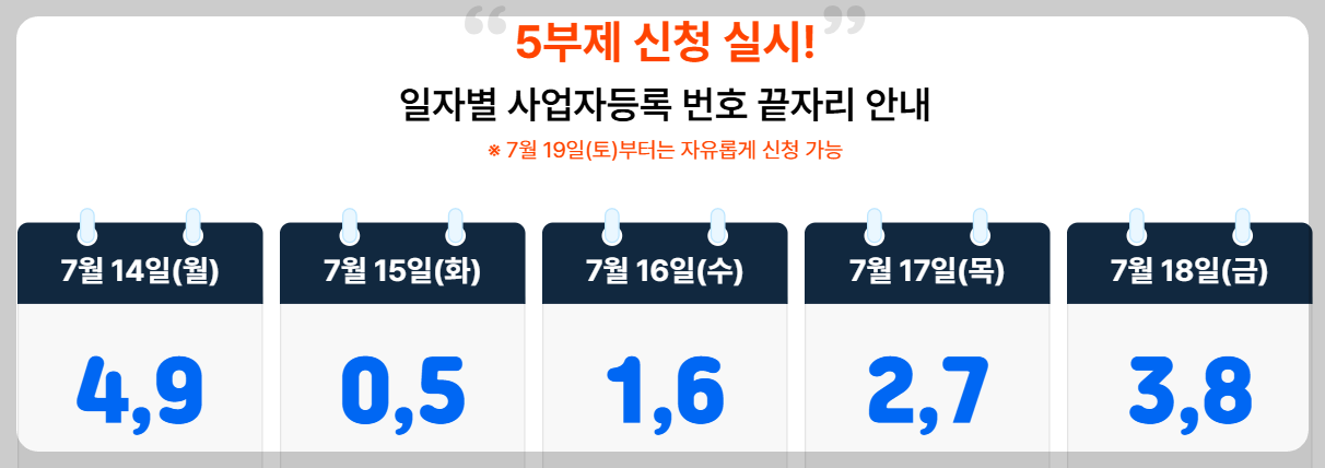 ※ 원활한 신청을 위해 7.14. ~18(5일간) 사업자 등록번호 끝자리 기준 5부제 운영)