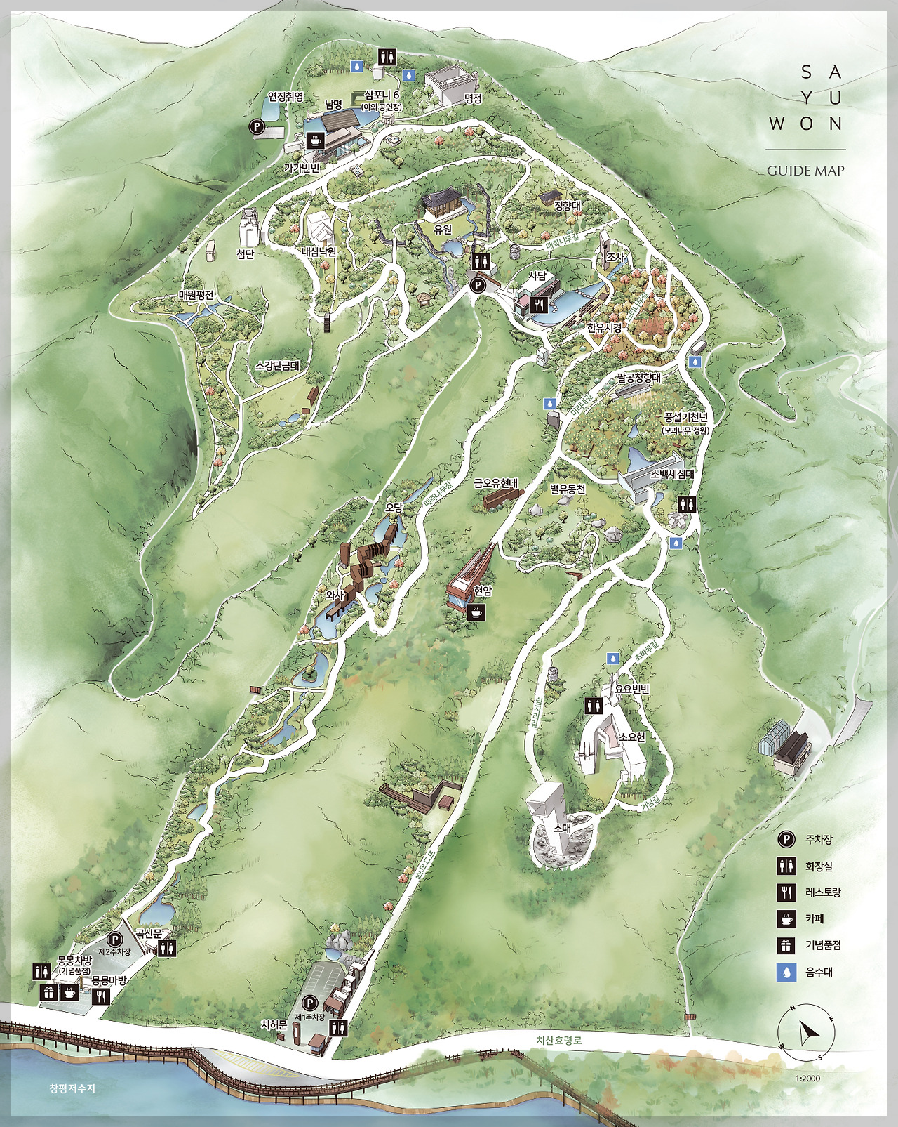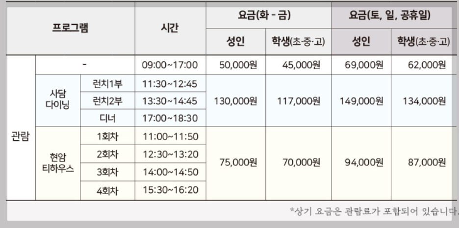 ● 원내에 위치한 사담 다이닝과 현암 티하우스는 사유원 매표소에서 도보 약 30분 정도 소요되니, 예약된