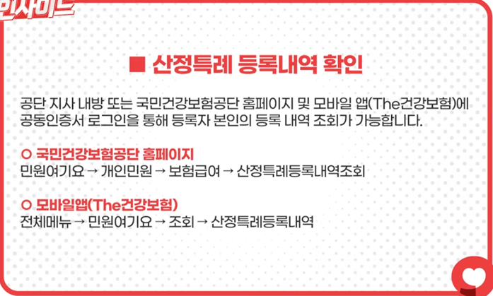 ● 공단 홈페이지 (www.nhis.or.kr)이나, The건강보험 모바일앱에서 확인 가능합니다.