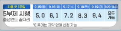 ⯄ 신청 첫 주는 5부제 (출생연도 끝자리) 운영.