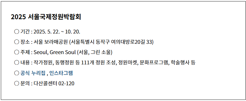 서울국제정원박람회는 문화·휴식·경제가 어우러지는 새로운 도심형 축제 모델이니다. 서울의 매력을 알리