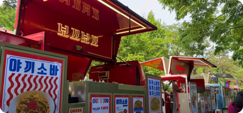 ⦁ 서울국제박람회의 또 다른 즐거움은 무엇보다도 푸드트럭존입니다. 푸드트럭 바로 앞에는 숲 속무대가 있