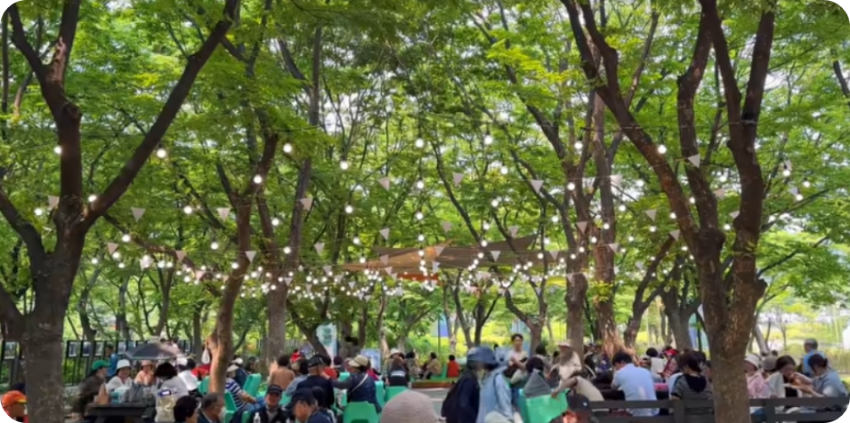 ⦁ 많은 사람들이 쉬어가면서 숲 속에서의 시원함을 만끽하고 있습니다.