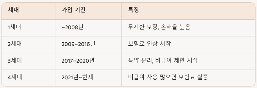 ● 실손의료보험은 가입 시기에 따라 보장 내용과 보험료 구조가 달라집니다.