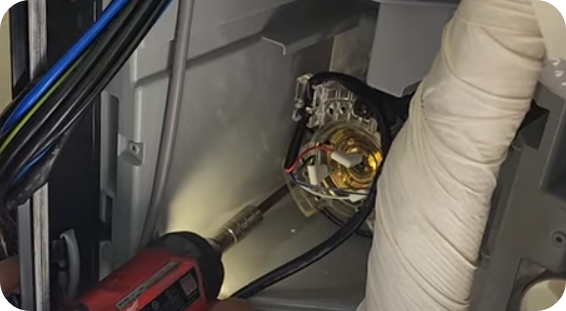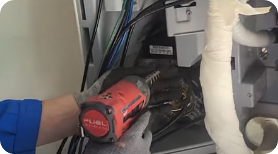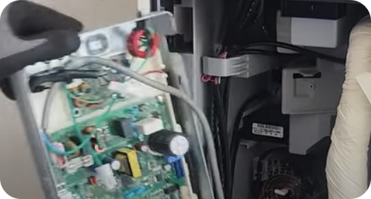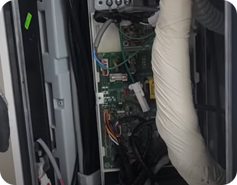 5) 에어컨 몸통 중건에 붙어있는 PVB펀을 떼어낼 때 조립할 때 혼선되지 않게 전선색깔 확인 표시하기 바