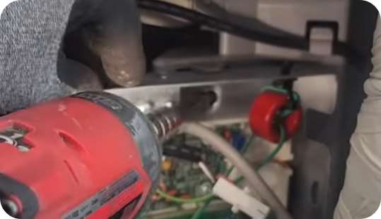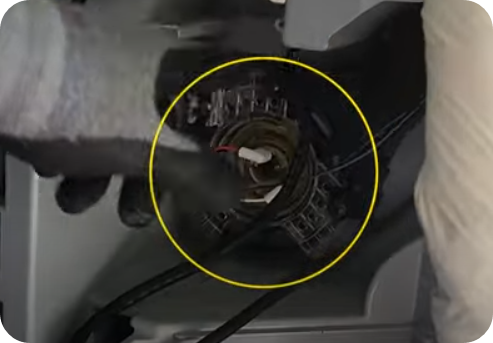 16) 좌, 우 필터조립하고 자동청소기 부착하고 좌측에 PCB판 조립하면서 잭 연결하고 전선 고정한다.