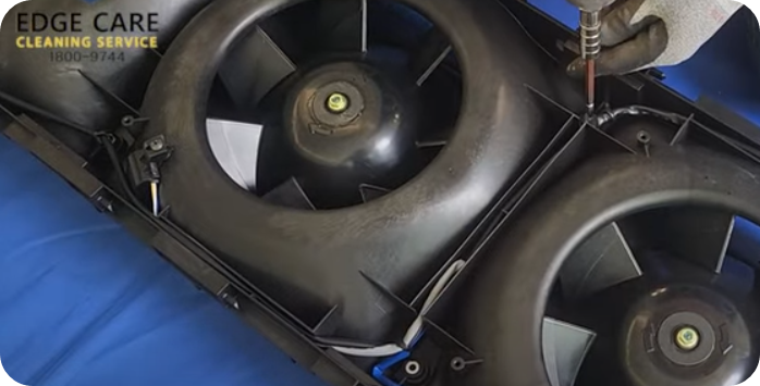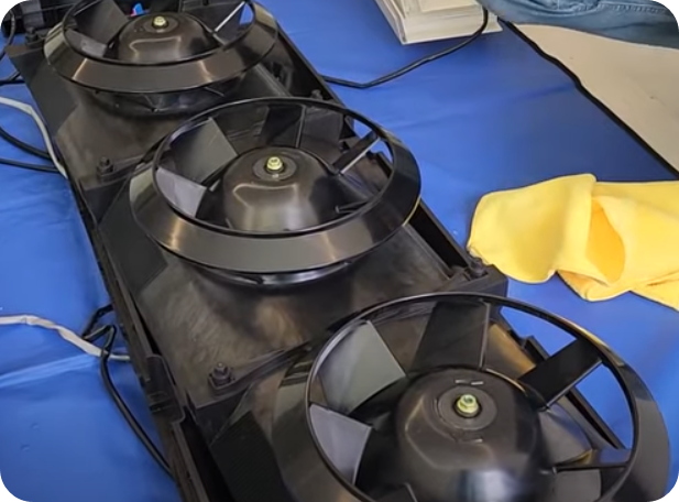 12) 무터 3개를 조립하고 뒤집어 먼지제거 후 팬3개조립드형)는 고온 다습의 기온으로 실내 공기오염을 유