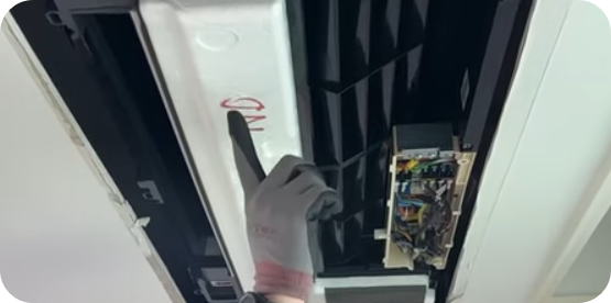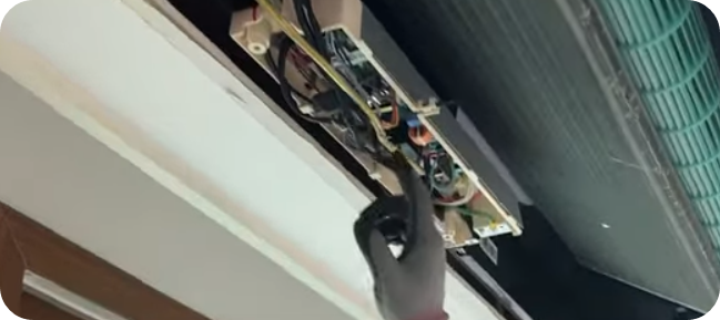 5) 왼쪽에 보면 선이 2개가 있는데 에어컨마다 다를 수가 있고 4가닥일 수도 있다. 선 끈을 따라가다 보면