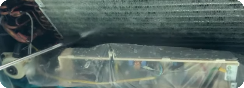 12) 송풍팬을 빼지 않고 그대로 세척을 한다. 송풍팬을 세척 후 재결합을 해도 됩니다.