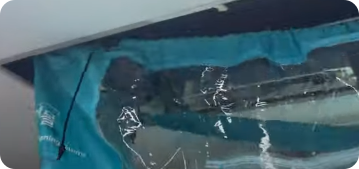 ⯄ 천장에 설치된 닥트시설내부를 육안으로는 볼수사가 없는 시설로 먼지와 습기로 인해 곰팡이가 생기고