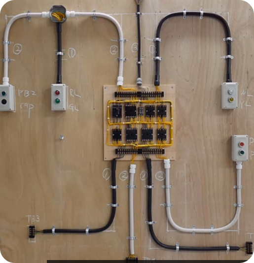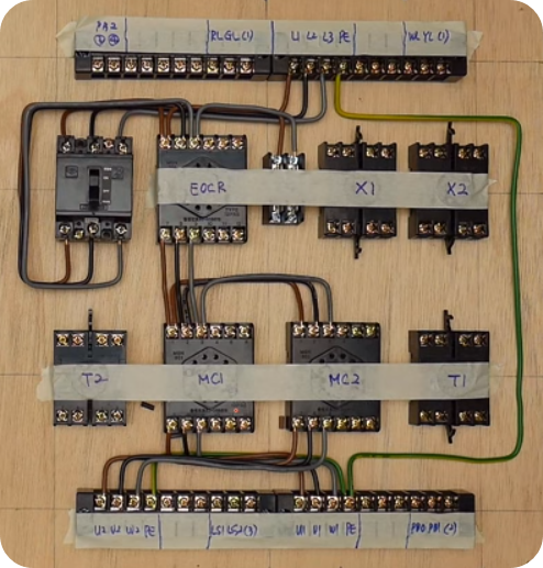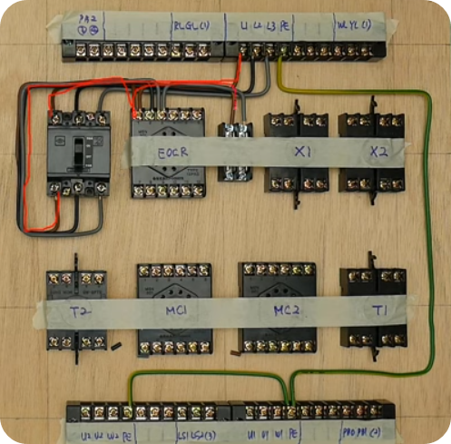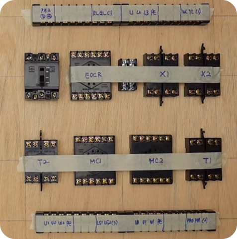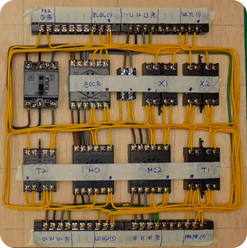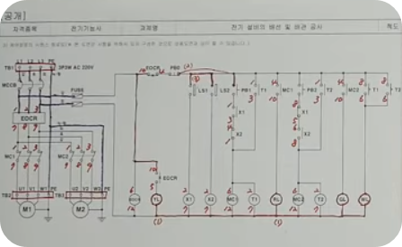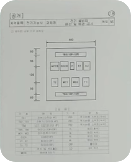 ※ 도면이 주어지면 도면에 맞게 시퀀스 회로를 만들어야 합니다. 제어반에 전기, 전선을 연결한 후 테스트하여 합격하여야 한다.