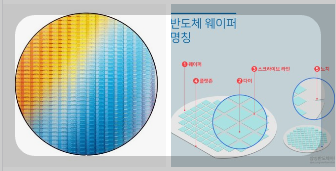 ⯄ 웨이퍼[Wafer] : 반도체의 재료가 되는 얇은 원판. 반도체 직접회로 원판 핵심소자로서 둥근 판 안