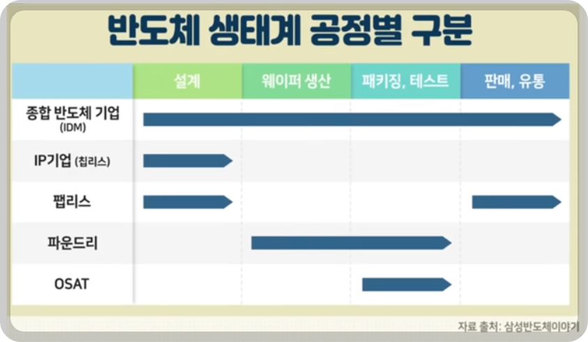 ⯄ 반도체 산업에서 상품기획, 회로설계, 공정개발, 제조, 패키징을 하던 종합반도체업 기업을 웨이