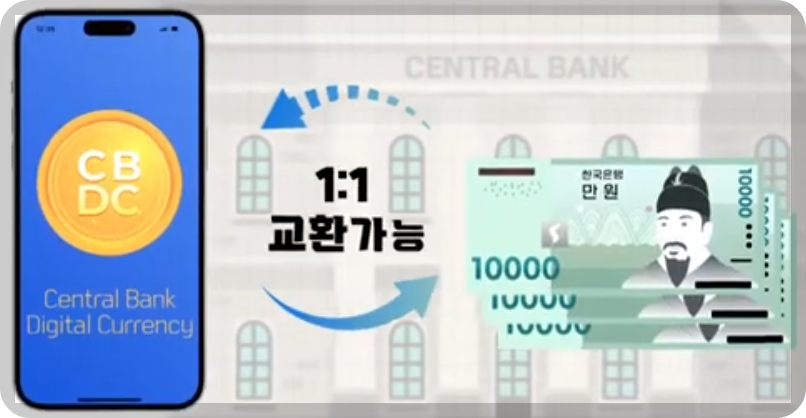 ⯄ 중앙은행이 가치를 보증하기 때뮨에 현금과 똑같이 언제든 실물현금과 1:1로 교환도 가능합니다.