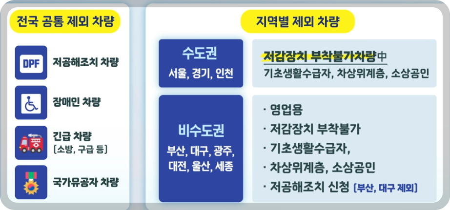 ● 5등급 치량 중 저공해시설 미설치차량 대상입니다.